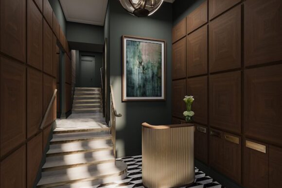 These areas of the building are resplendent with period features, such as glazed brick bays and decorative cast iron columns, that have been retained and restored in respect of the historic building.