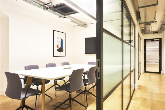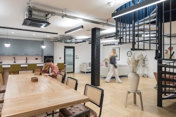 Fully fitted layouts with open-plan desk areas, breakout zones, and boardrooms