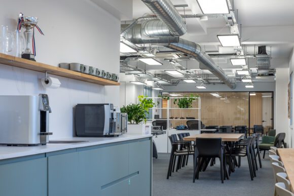The offices includes a dedicated large kitchen and breakout space as well as meeting rooms.