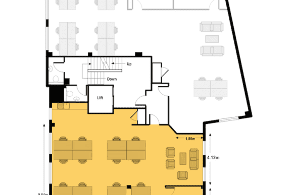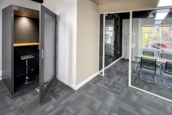 It offers a private working environment complete with its own meeting room, kitchen and lounge areas—ideal for teams looking for independence and a quiet space to focus.