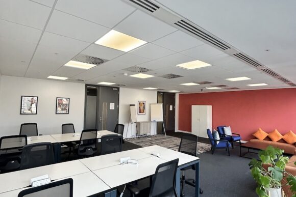 These modern offices are designed for productivity and comfort, featuring high-speed internet, meeting rooms on demand, stylish breakout areas, and professional reception services.