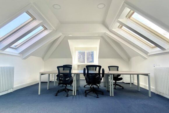 The boardroom overlooks the square, seating up to ten people and is available on an hourly or daily rate.