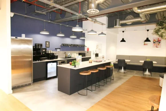 Cubo Soho promises an impressive environment for you and your clients, featuring ample co-working space, a welcoming reception area, a barista station, kitchens, meeting rooms, and a wide range of private offices and dedicated desks.