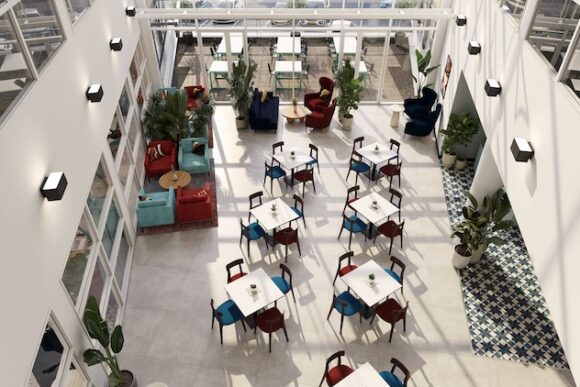 Onsite café and communal outdoor areas
