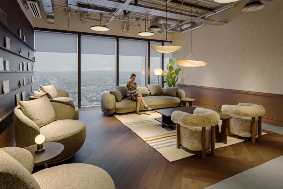 Located at 65 Nine Elms Lane, SW11 7EU, this contemporary workspace provides fully furnished, design-led office suites on flexible terms, ideal for start-ups, scale-ups and established companies seeking office space in Battersea.